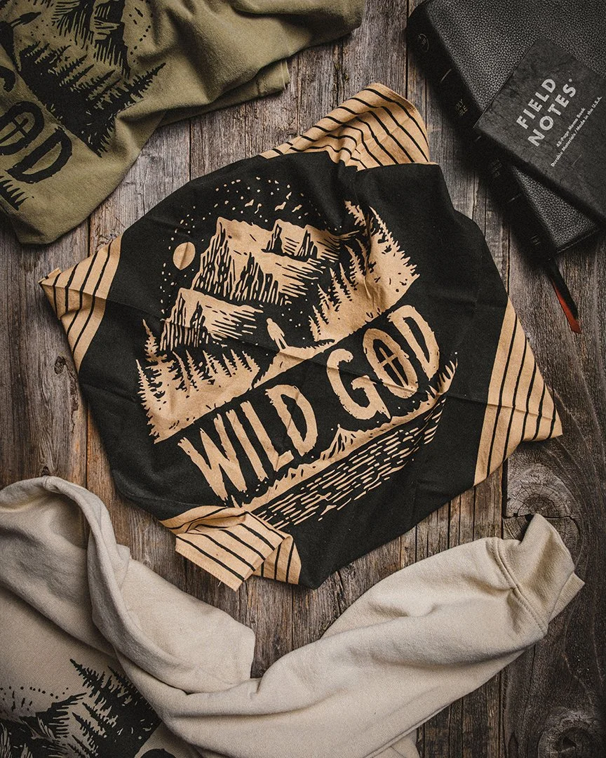Wild God Creation Tee $24.95 WILD GOD Creation Hoodie $44.95 GOD IS WILD Tee (Charcoal) $24.95 GOD IS WILD Tee (Khaki) $24.95 WILD GOD Creation Bandana $9.95 WILD GOD Creation Tote $14.95